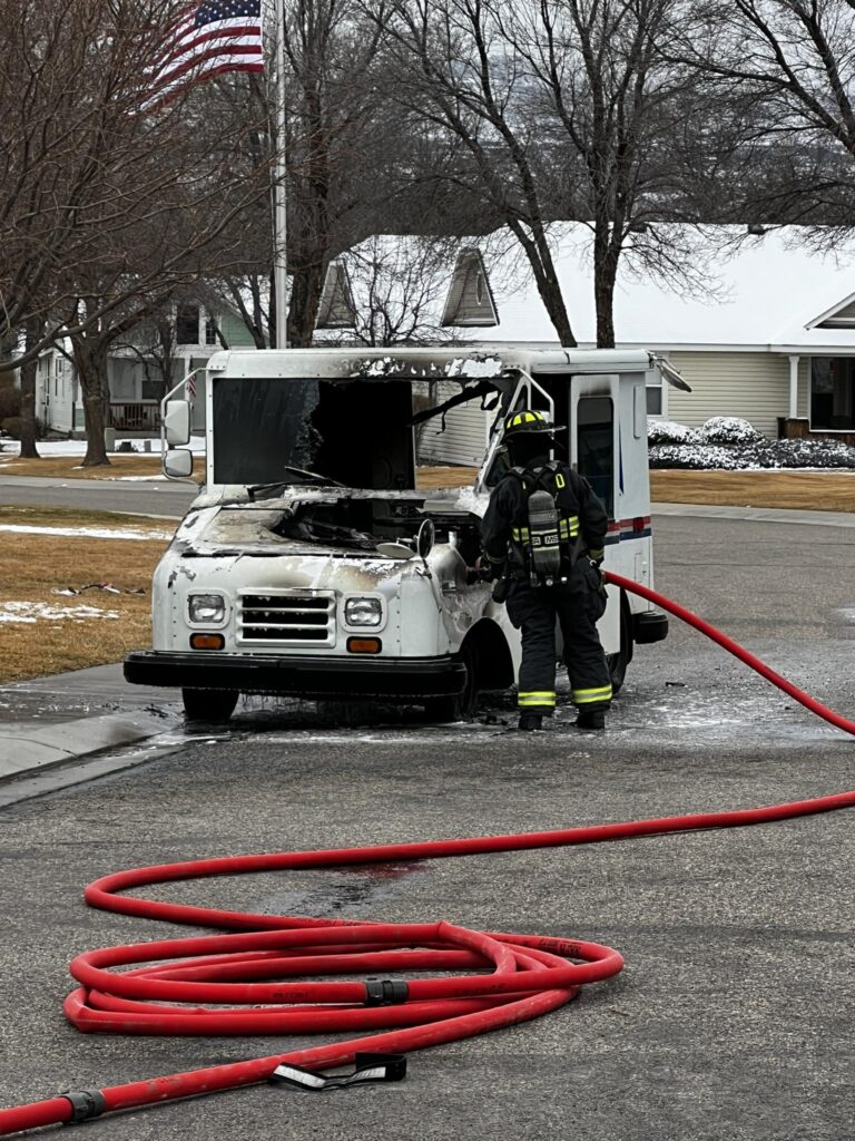 Lower Valley Fire District responded to a vehicle fire around 4:05 p.m. on Periwinkle Lane east of 18 Road in Fruita. Vehicle is described as a mail truck with a fire contained to the engine compartment, flames visible. Lower Valley crews were able to quickly extinguish the fire. No other structures were threatened and no injuries were reported.