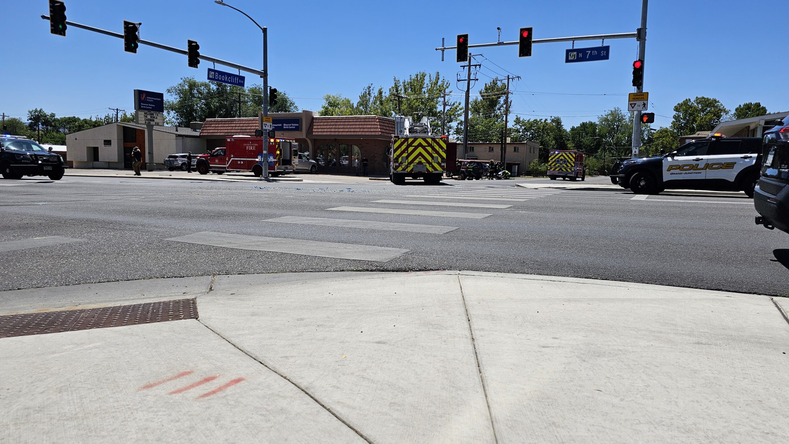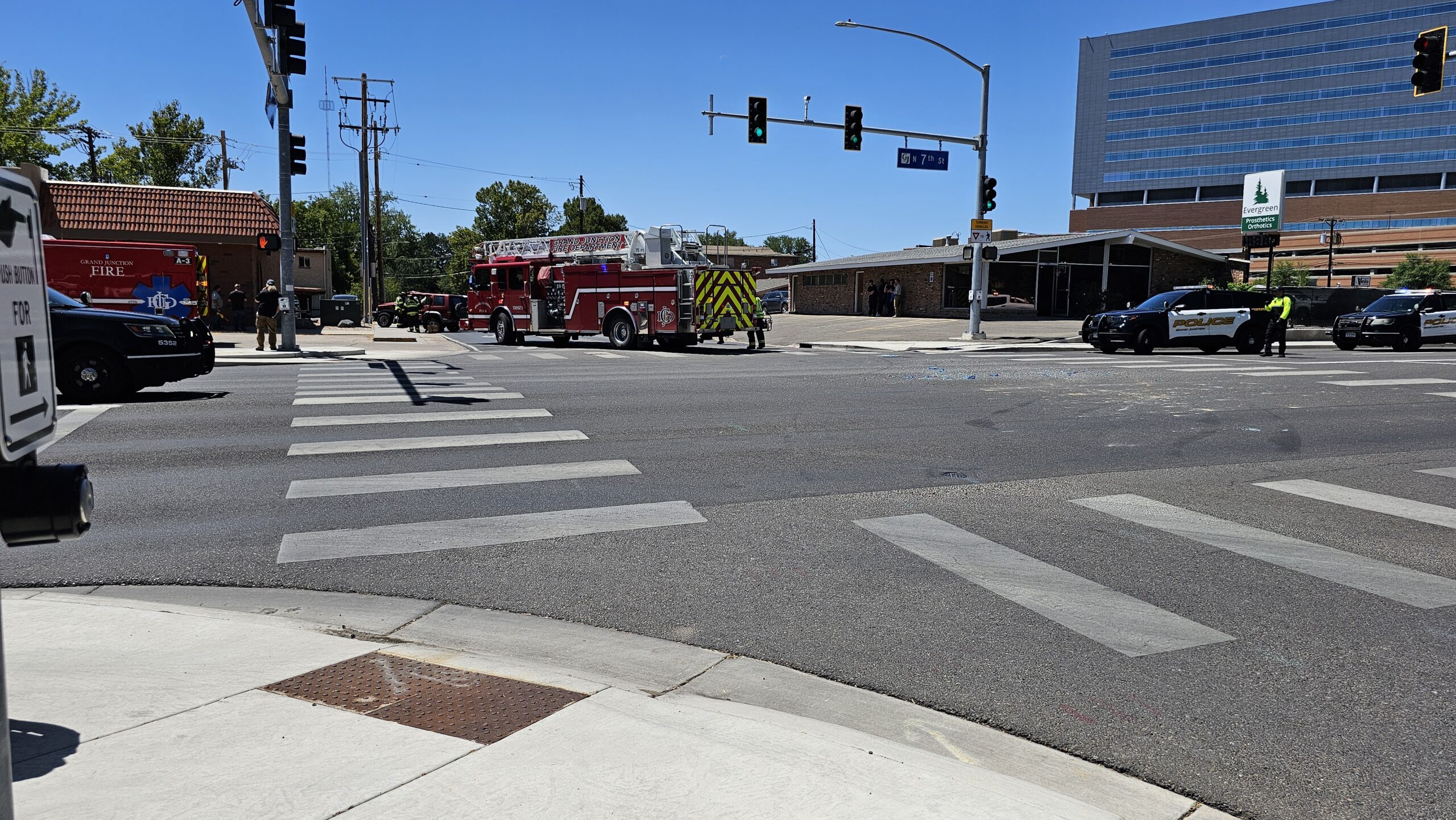 Two vehicle accident at the corner of N 7th St and Bookcliff Ave. One person was trapped in a vehicle.