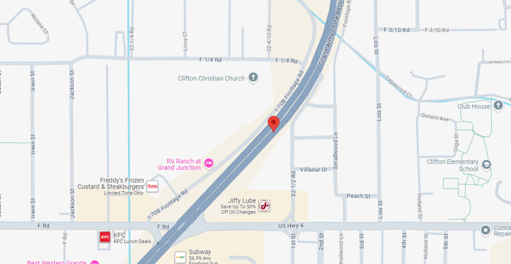 Police located the vehicle and took the suspect into custody in the area of I-70BL and 32 1/2 Rd after following the vehicle from D RD, to 32 1/2, then I-70BL.