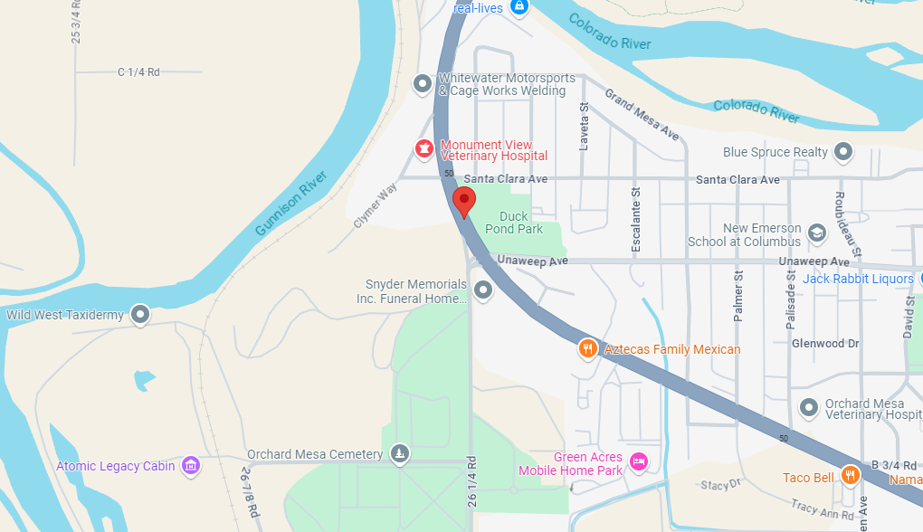 Vehicle vs motorcycle accident between Unaweep Ave and Santa Clara Ave on Highway 50. Motorcycle rider is a 25 year old male, is up and walking but holding his stomach in pain. Motorcycle had a passenger that is also being treating.