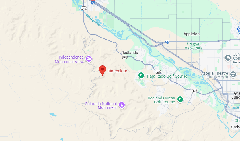 Two vehicle accident ion Rim Rock Dr on the Colorado National Monument. Currently, both trucks are stable and safely on the side of the road. One driver is having trouble opening their truck door. There is an elderly male in one truck reporting some injuries.