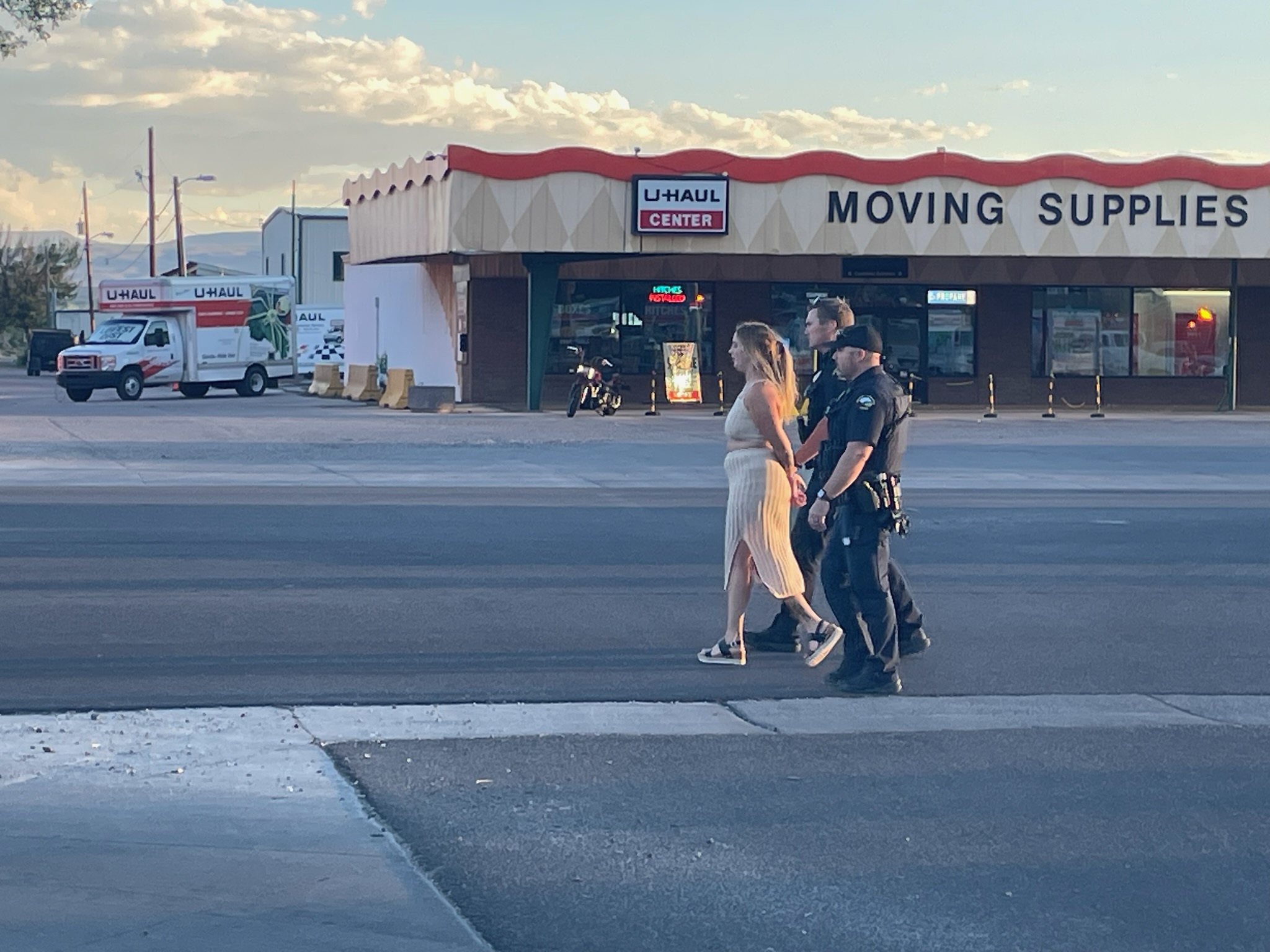 Two vehicle accident blocking traffic at 29 1/2 Rd & North Ave. Bystander broke a window to help a person that was stuck inside get out. A small gray vehicle is heavily damaged. A utility pole was also damaged in the crash. Police have taken one female into custody related to the accident.
