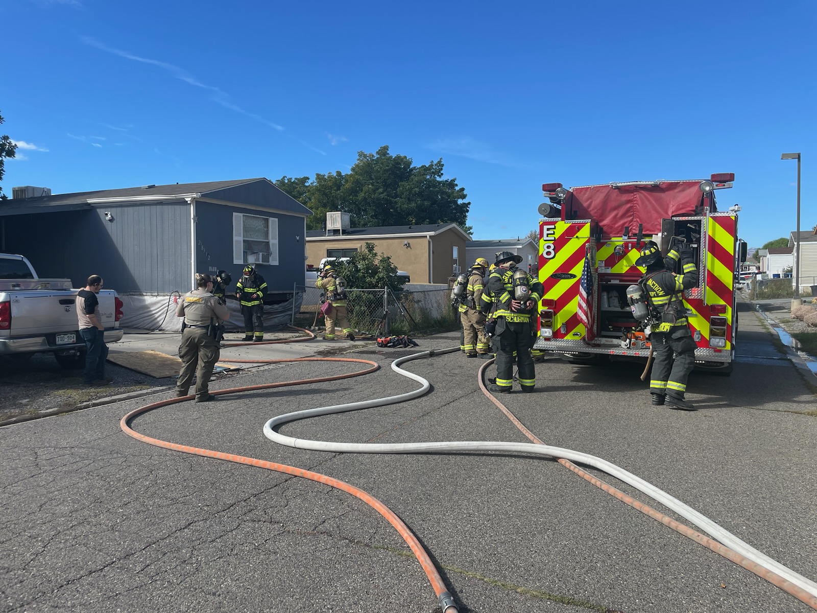 Smoke and flames seen coming from under a mobile home on Yew Willow Leaf Ave near D Rd & 30 Rd. Fire was isolated to the area underneath of the home and was put out by responders.