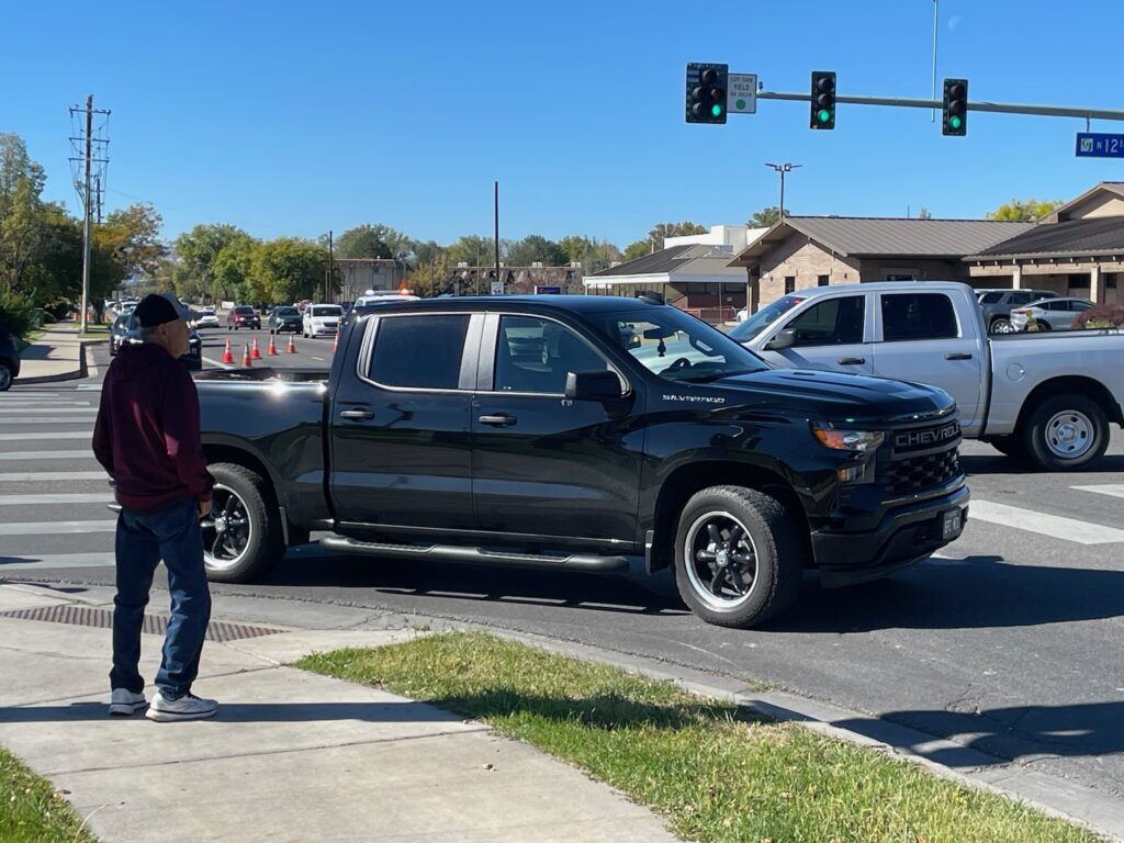 Vehicle vs pedestrian accident at N 12th St and Patterson Rd. Elderly man hit an elderly female crossing the road. Victim has a head injury and was transported to St. Mary’s Hospital.
