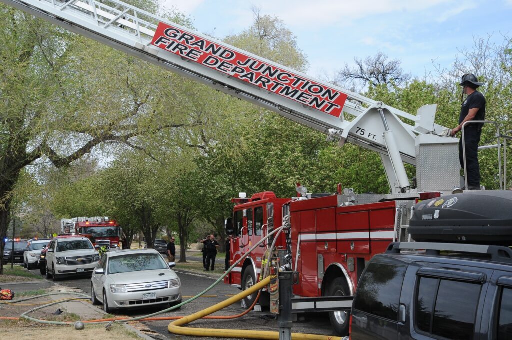Grand Junction, CO — At 9:46 a.m., the Grand Junction Fire Department was dispatched to a reported residential structure fire in the 1100 block of Gunnison Avenue. Callers reported visible smoke and flames coming from the windows of a two-story home.