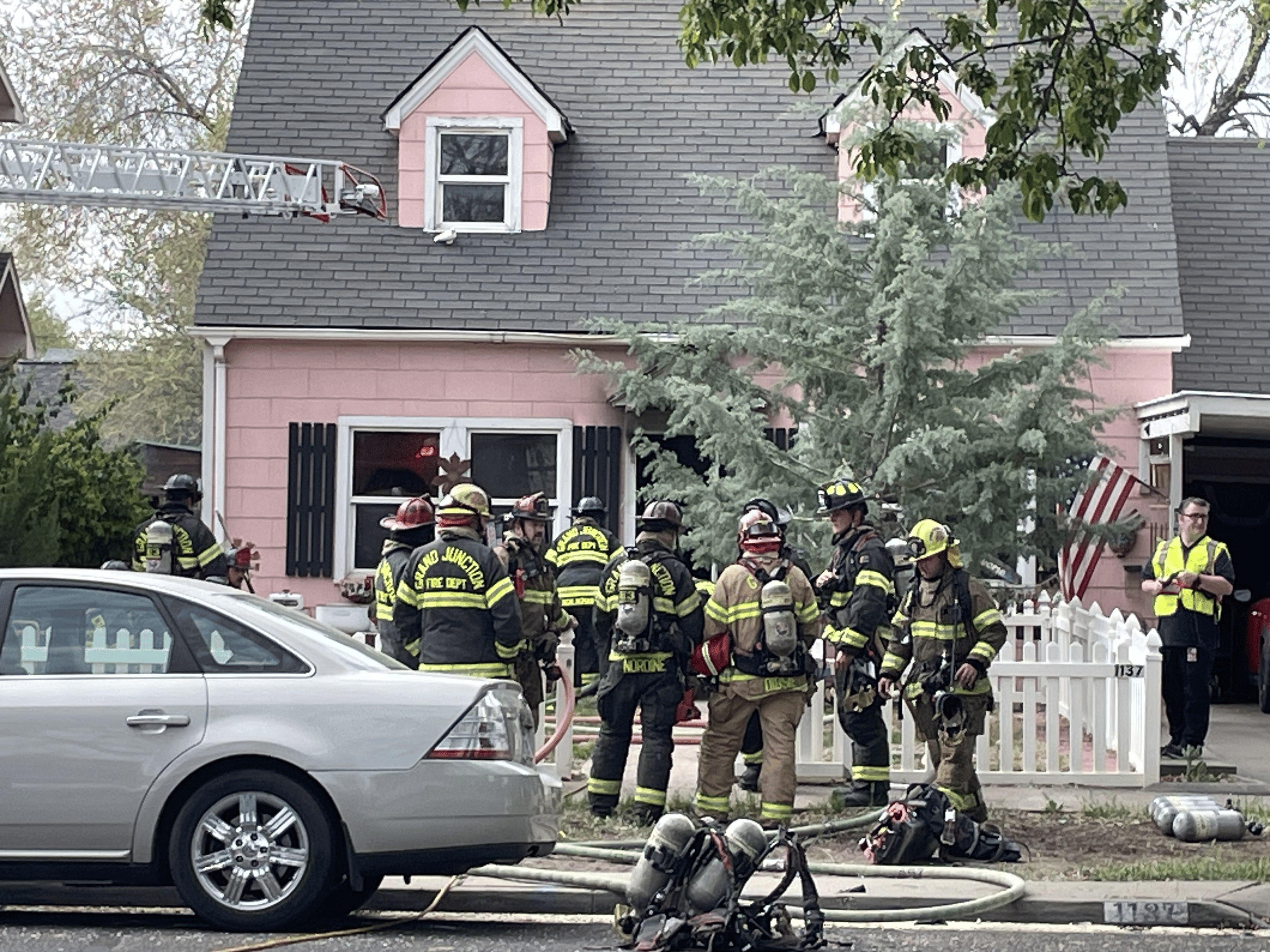 Grand Junction, CO — At 9:46 a.m., the Grand Junction Fire Department was dispatched to a reported residential structure fire in the 1100 block of Gunnison Avenue. Callers reported visible smoke and flames coming from the windows of a two-story home.