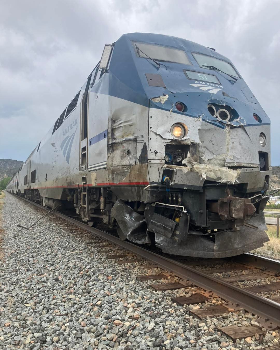 Westbound Amtrak into Grand Junction has struck a trailer attached to a dump truck in the Silt / New Castle area. No injuries are reported, including both truck and train passengers. Dump truck was towing a trailer with a generator attached to it. Amtrak will be delayed reaching the downtown Grand Junction station.