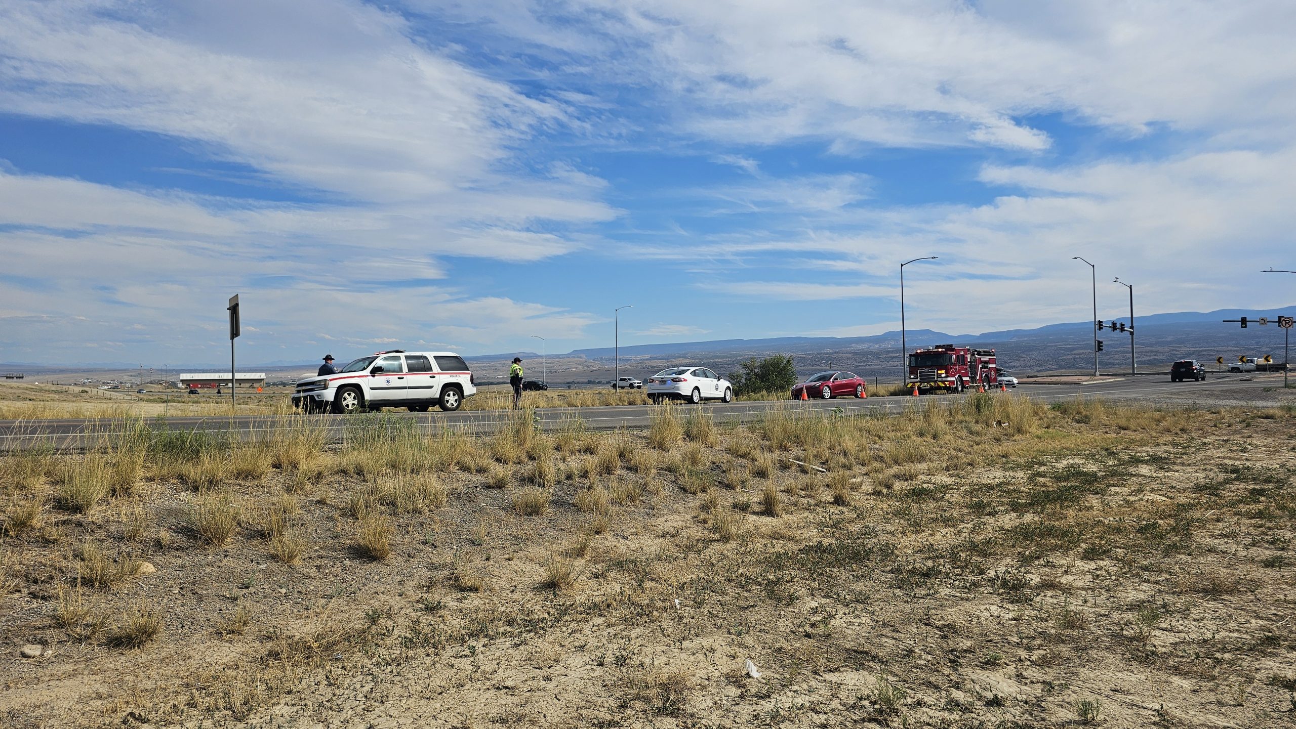 Single vehicle rollover in the area of Highway 50 and 32 Road. A 16-year-old male driver has fled the area after crashing a Ford F-150. Sheriff and State Patrol are in the area investigating. No injuries reported.