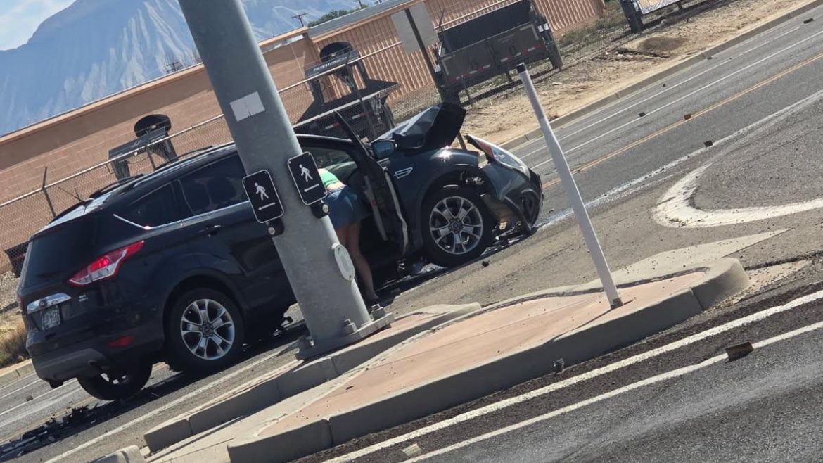 Two vehicle accident with airbag deployment at Teller Avenue and 29 Road. An ambulance was dispatched for a female occupant with wrist and knee pain. Vehicles are a Chevy Tahoe and a black Ford Escape.