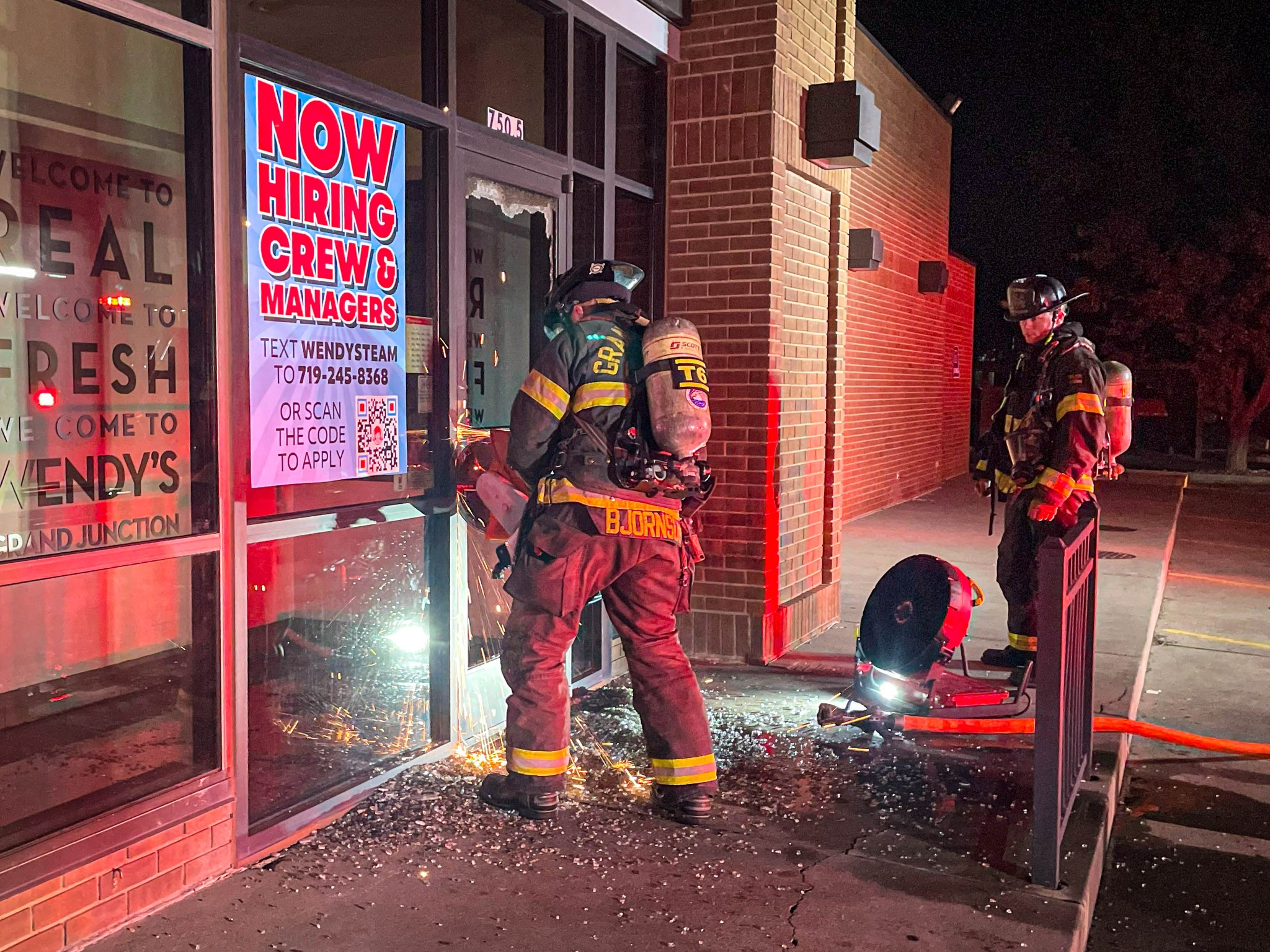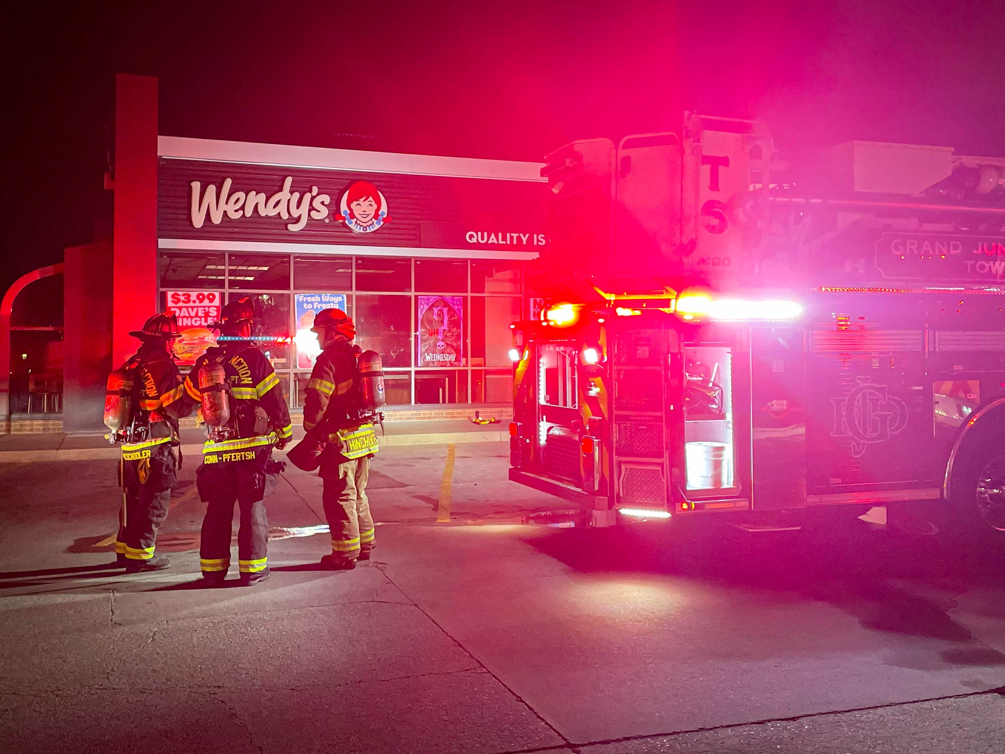 GRAND JUNCTION, CO – In the early hours of the morning, at approximately 3:53 a.m., the Grand Junction Fire Department (GJFD) responded to a reported structure fire at the Wendy’s restaurant located at 750 ½ Horizon Drive. The alert came from a caller at the nearby Clarion Inn, who noticed flames visible through a window of the fast-food establishment.