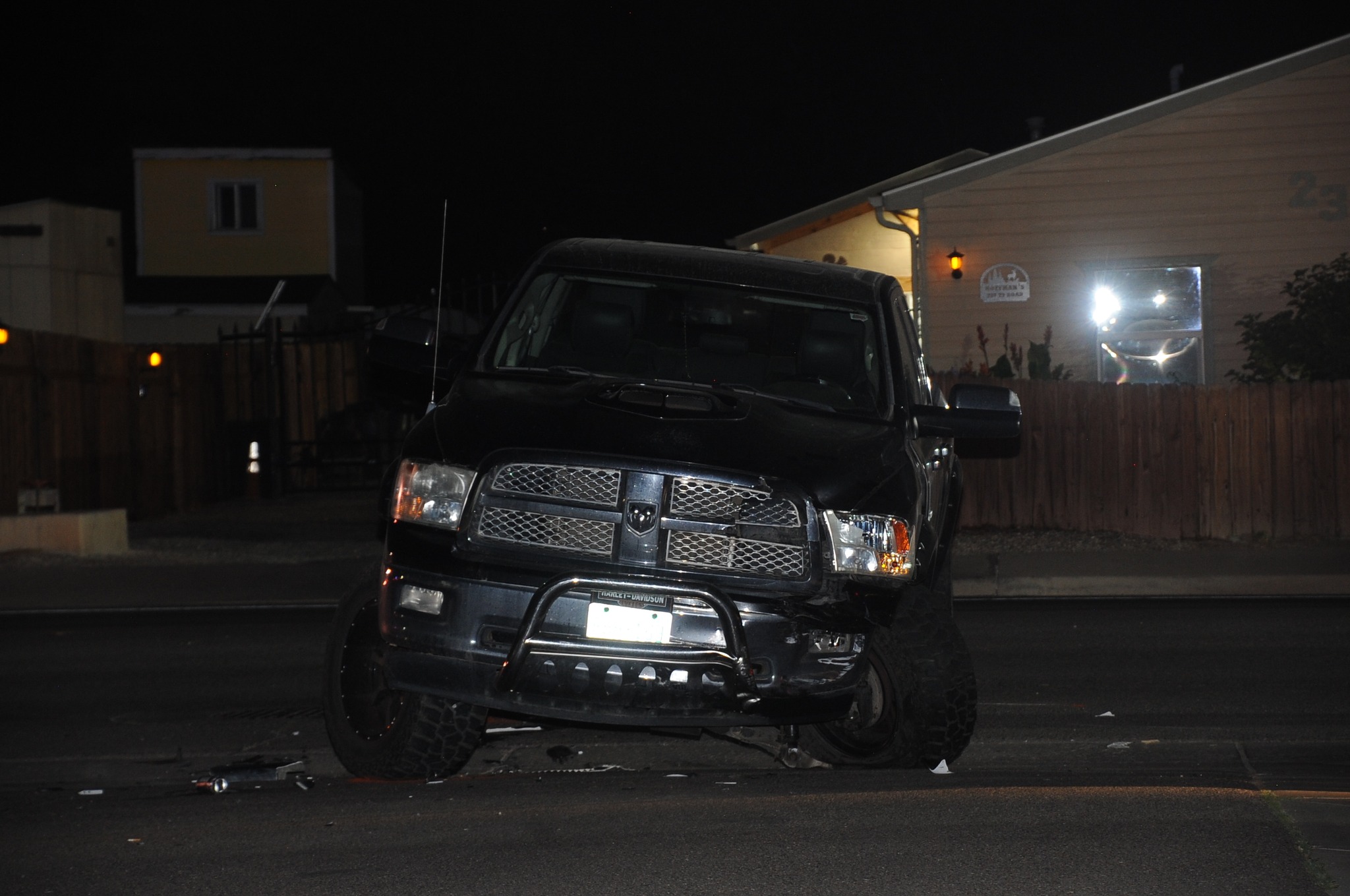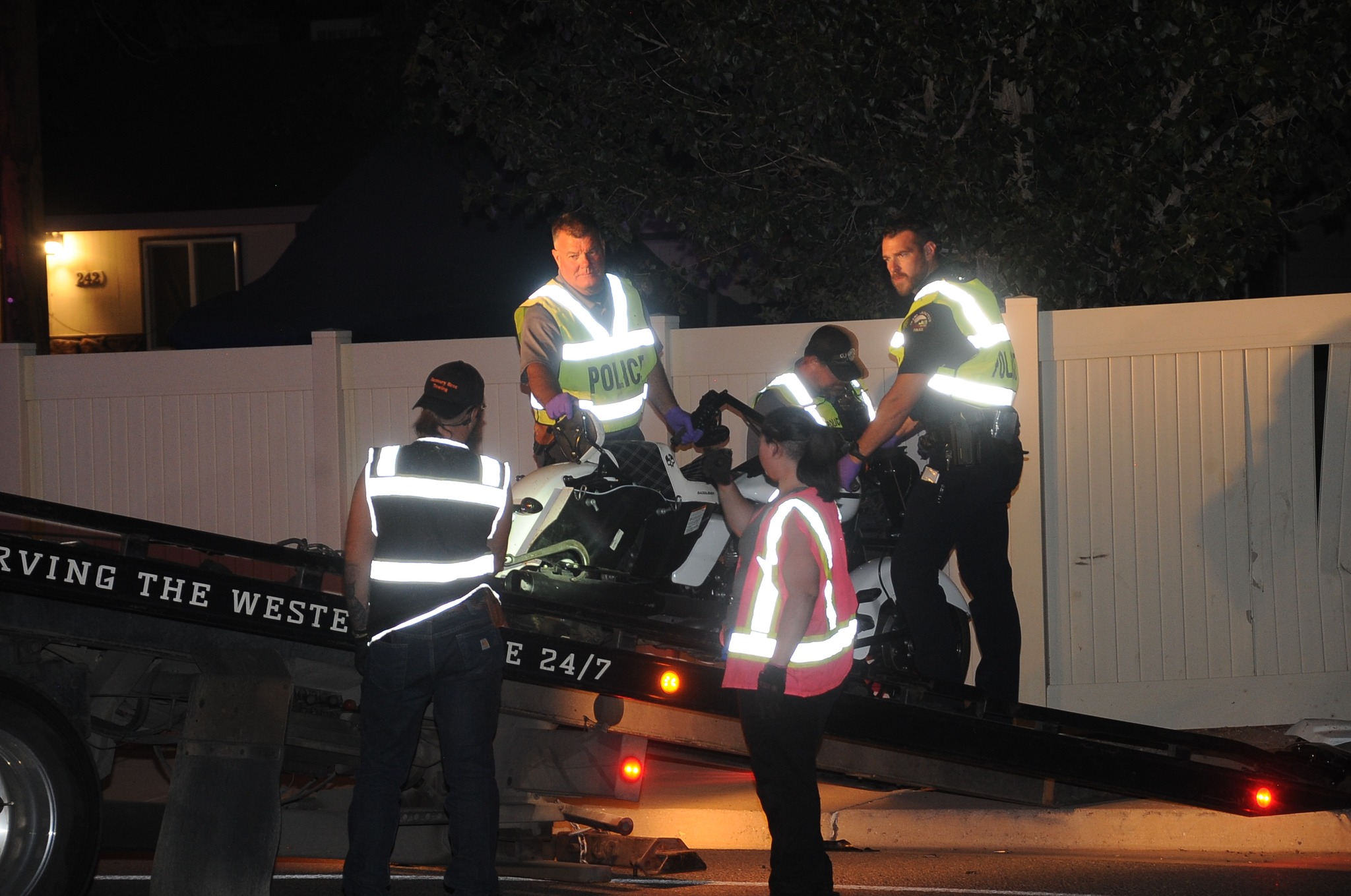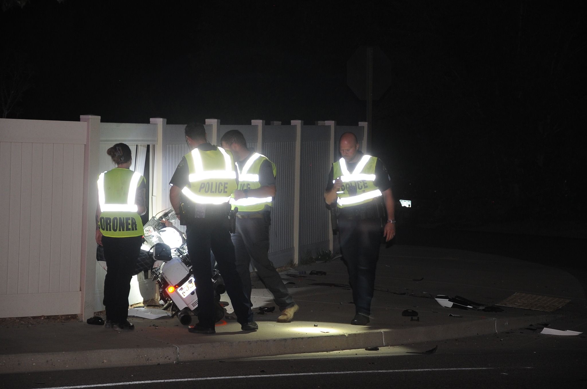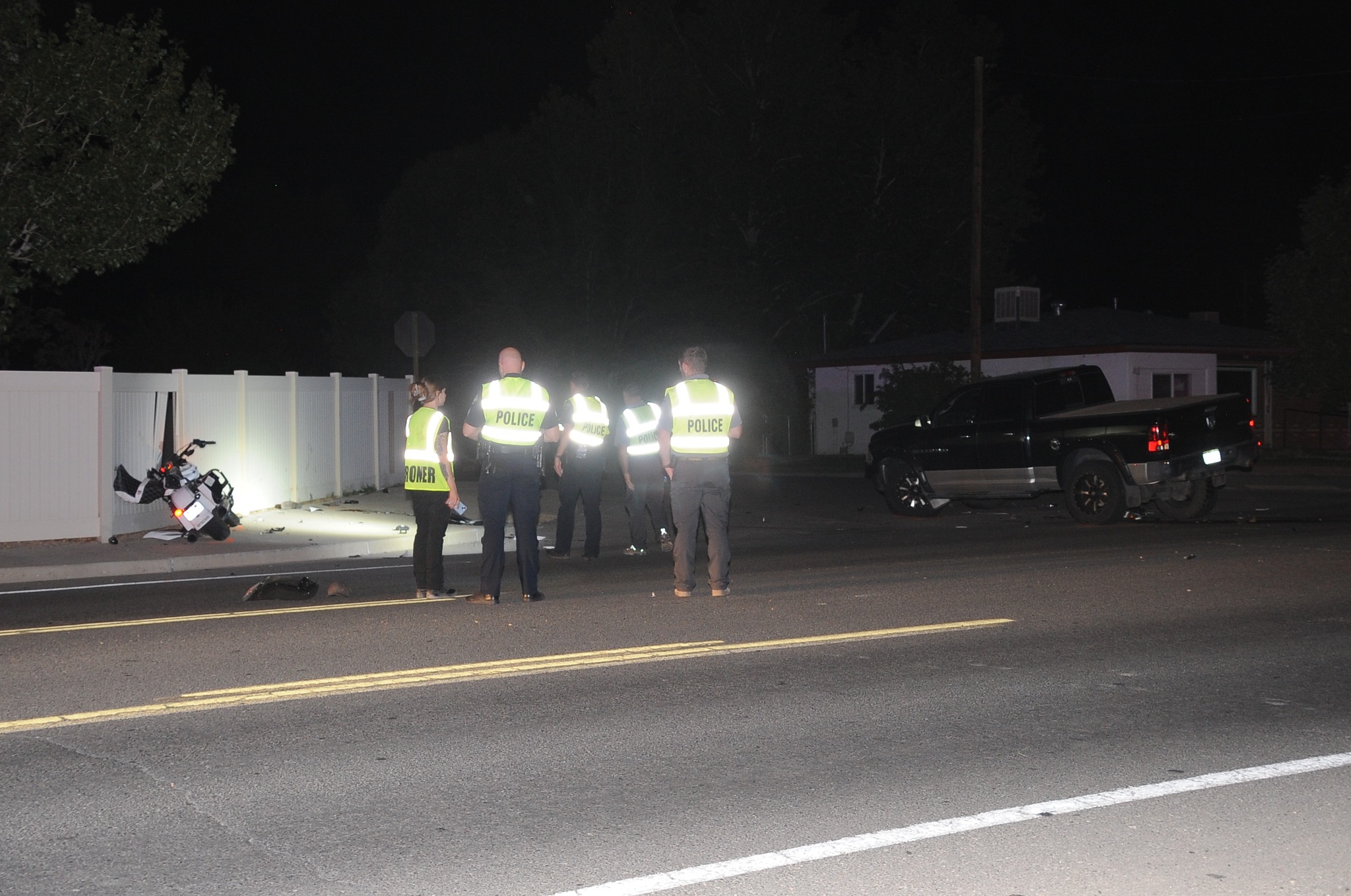 Update: The Mesa County Coroner was inspecting the accident scene. Both the motorcycle and truck were towed to the police impound lot.