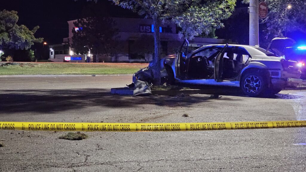 Update: Police have located the suspect vehicle in the Mesa Mall parking lot, and were involved in a high speed pursuit through the parking lot to the Target area. Two suspects are in custody after hitting a tree, and possibly a police cruiser. An ambulance has been dispatched to Target to check suspects for injury.