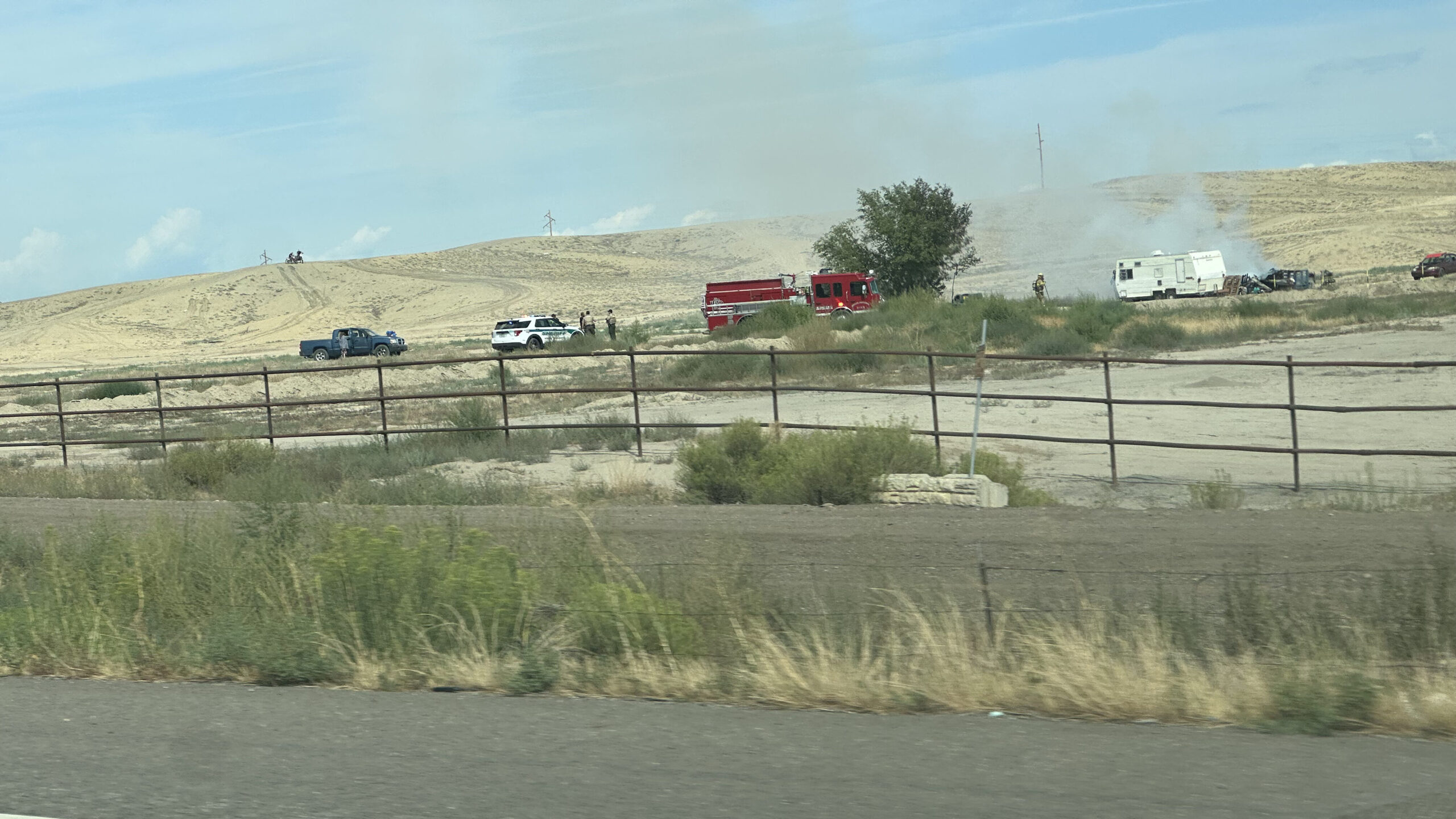 Multiple callers are reporting an RV on fire in the area of 31 Road and the desert north of I-70, east of the go-kart track. Grand Junction Fire Department has dispatched engines and brush trucks to the area. Crews arriving on scene are reporting one fully engulfed RV, with nearby exposure to another RV and a vehicle. Crews are working to extinguish.