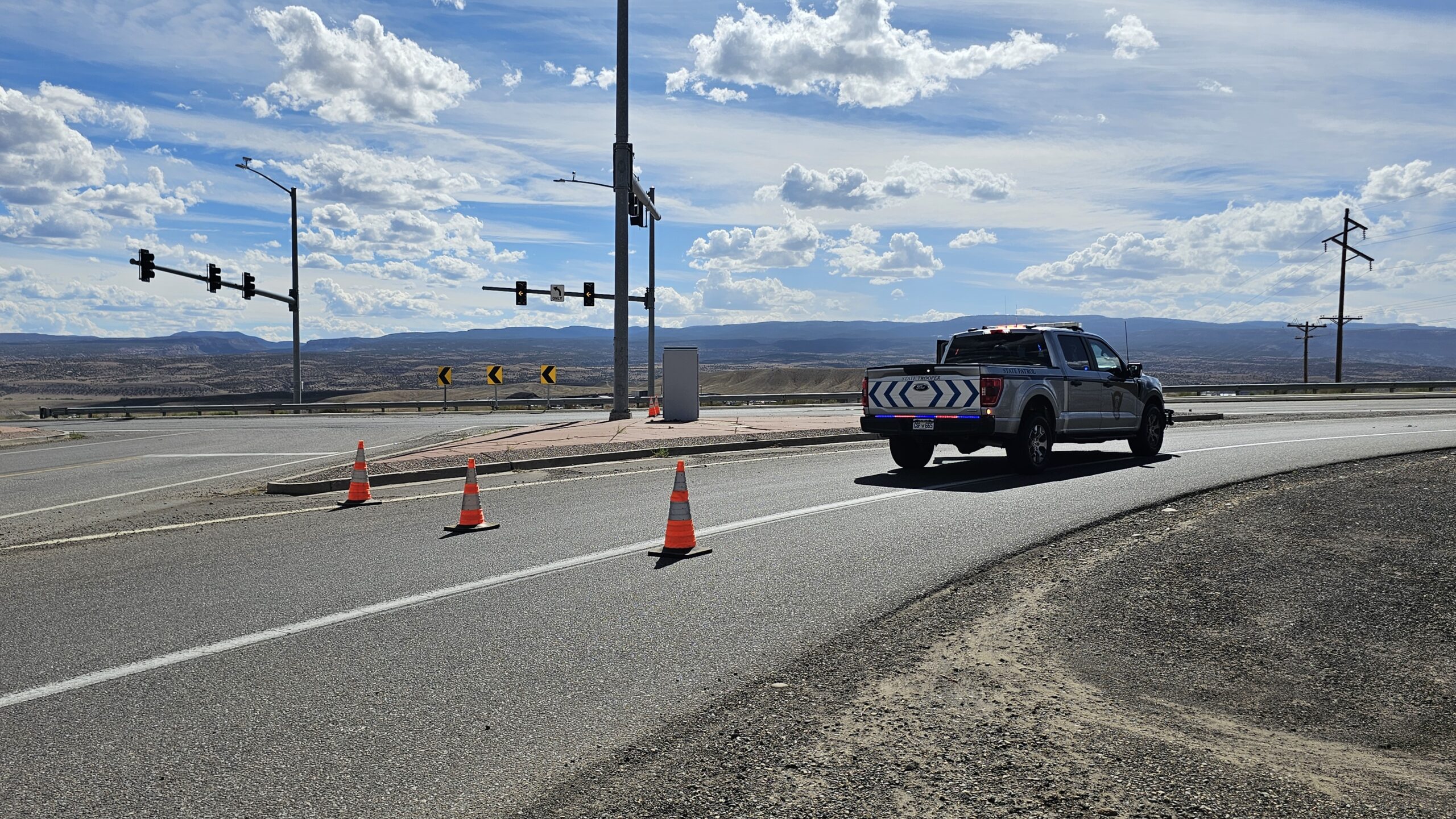 Westbound lanes of Highway 50 are closed at 32 Road with the traffic detoured northbound on 32 Road.