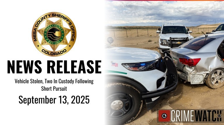 On Saturday, September 13, 2025, at approximately 11:40 a.m., Mesa County Sheriff’s Office deputies were dispatched to the 500 block of 32 Road for a report of a stolen vehicle. The owner provided dispatch with the license plate number and unique vehicle descriptors.
