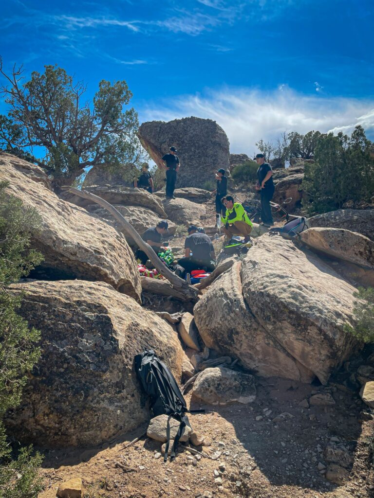 At 11:48 AM, responders were dispatched to Little Park Road at mile marker 11 on the Holy Cross Trail. A 65‑year‑old female crashed on her bike, is conscious and breathing, and possibly broke her elbow. Rescue‑1 and an air standby from CareFlight were requested. Responders believed the patient location may not be accessible by vehicle or ATV.