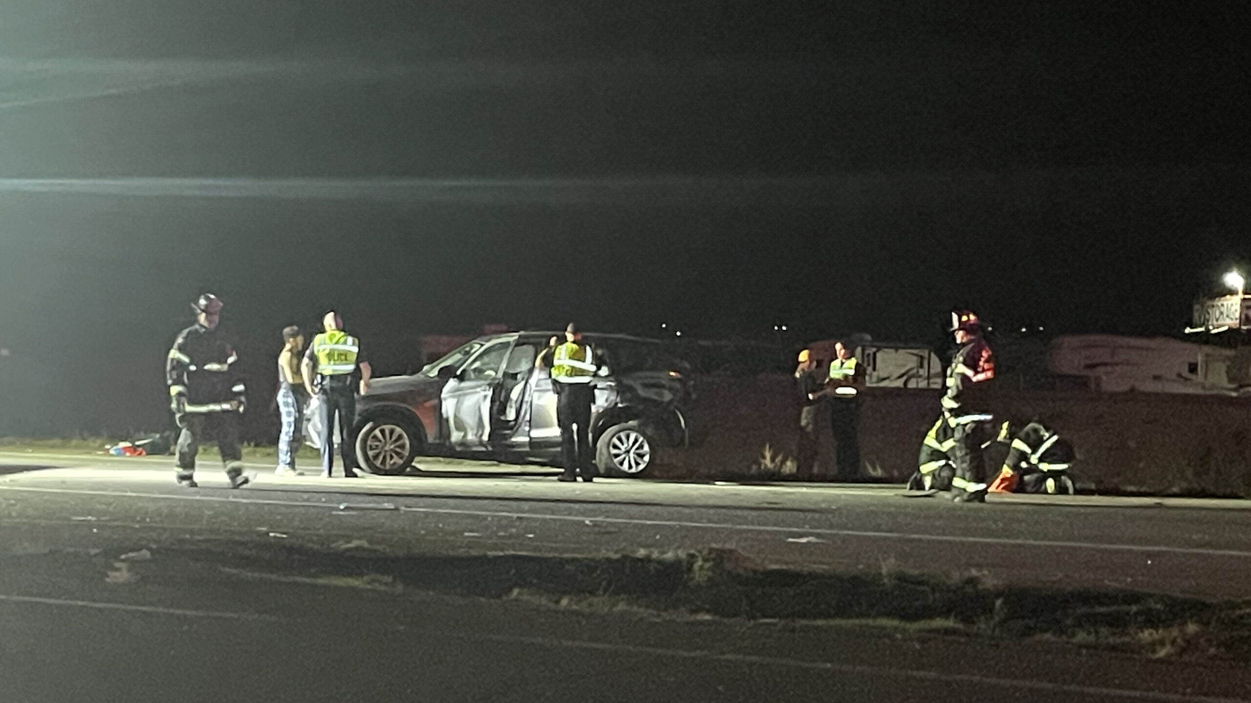 Two vehicle accident involving a Toyota Tundra with heavy front-end damage and a BMW with severe side and rear-end damage. Accident occured east of 29 Road on I-70 Business Loop. Minor injuries reported.