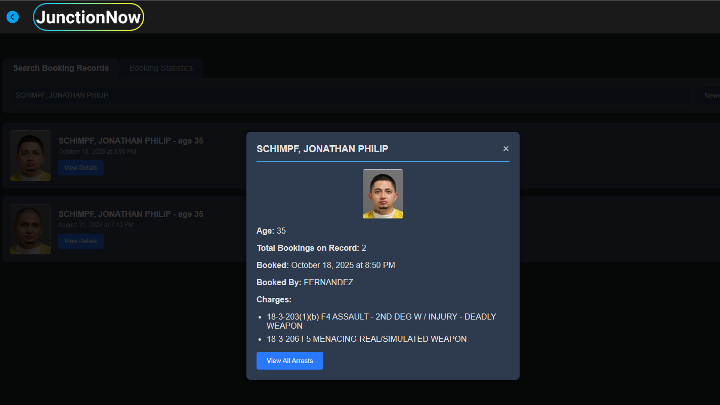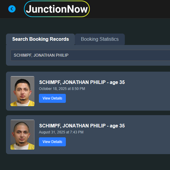 In a separate case, Schimpf was also arrested on Aug. 31, 2025, on a fugitive warrant from another jurisdiction, according to county booking records.