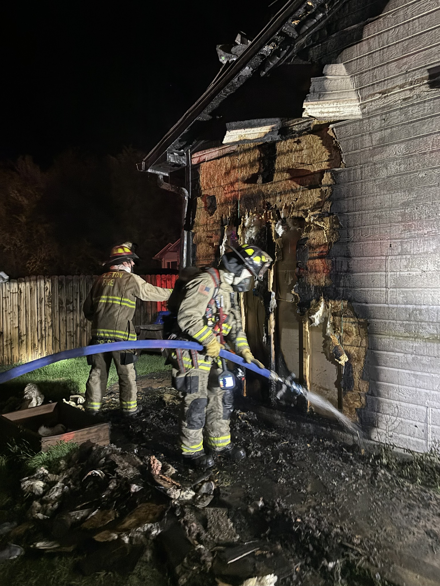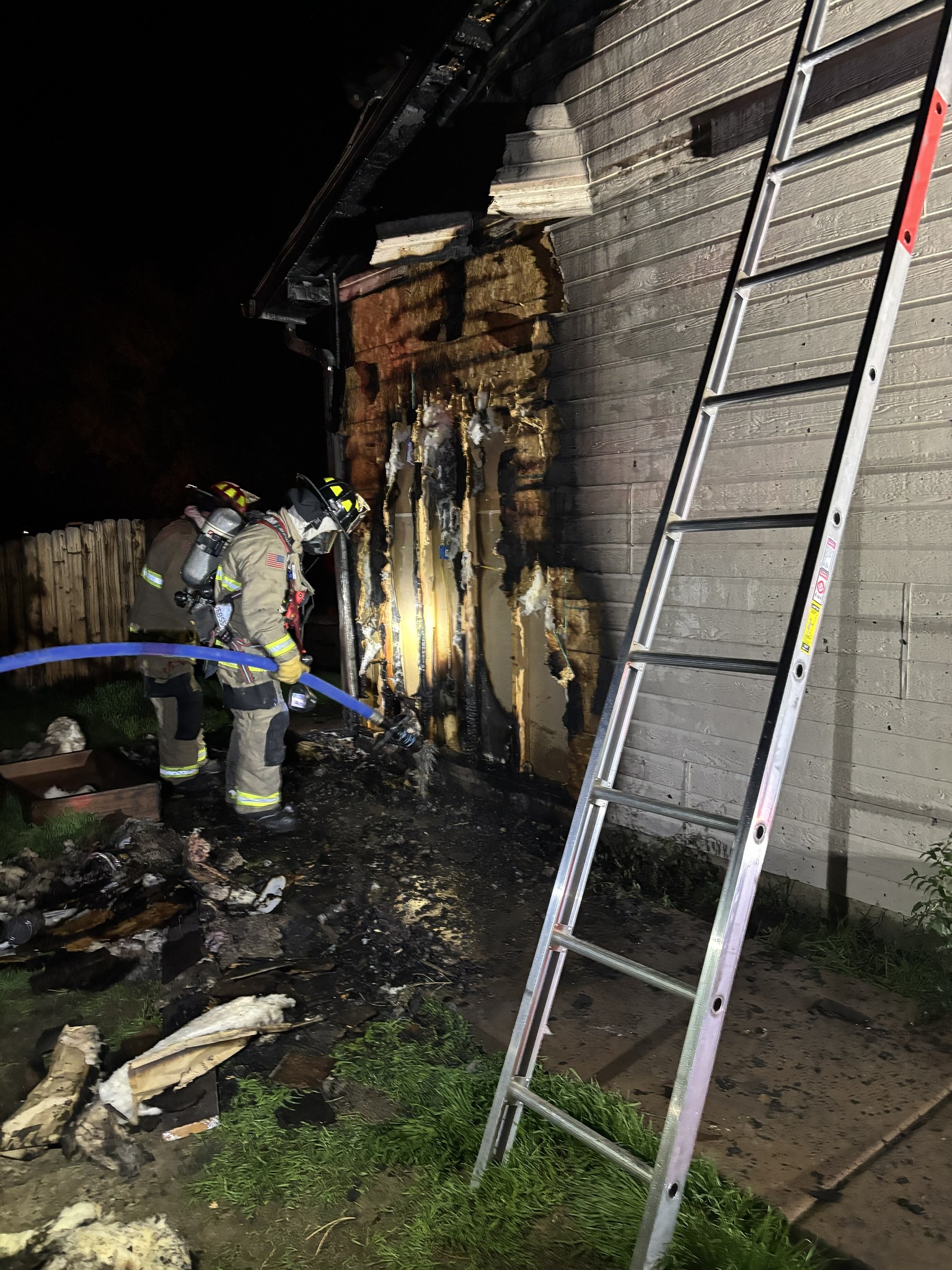 Crews were dispatched at about 3:44 a.m. for reports of a house fire. On arrival, firefighters found flames on the side of the home’s garage. An offensive fire attack was initiated, and the fire was quickly extinguished.