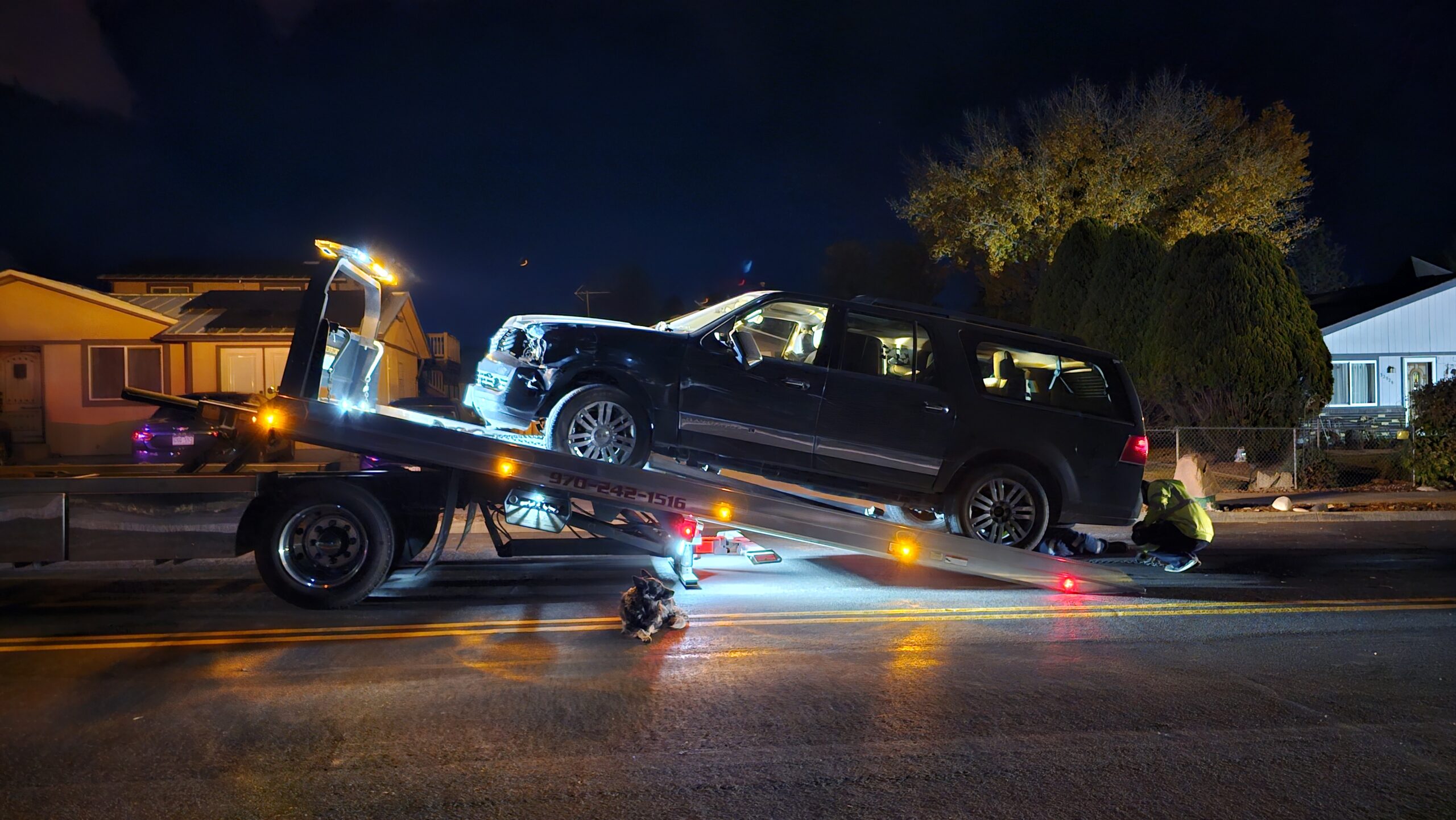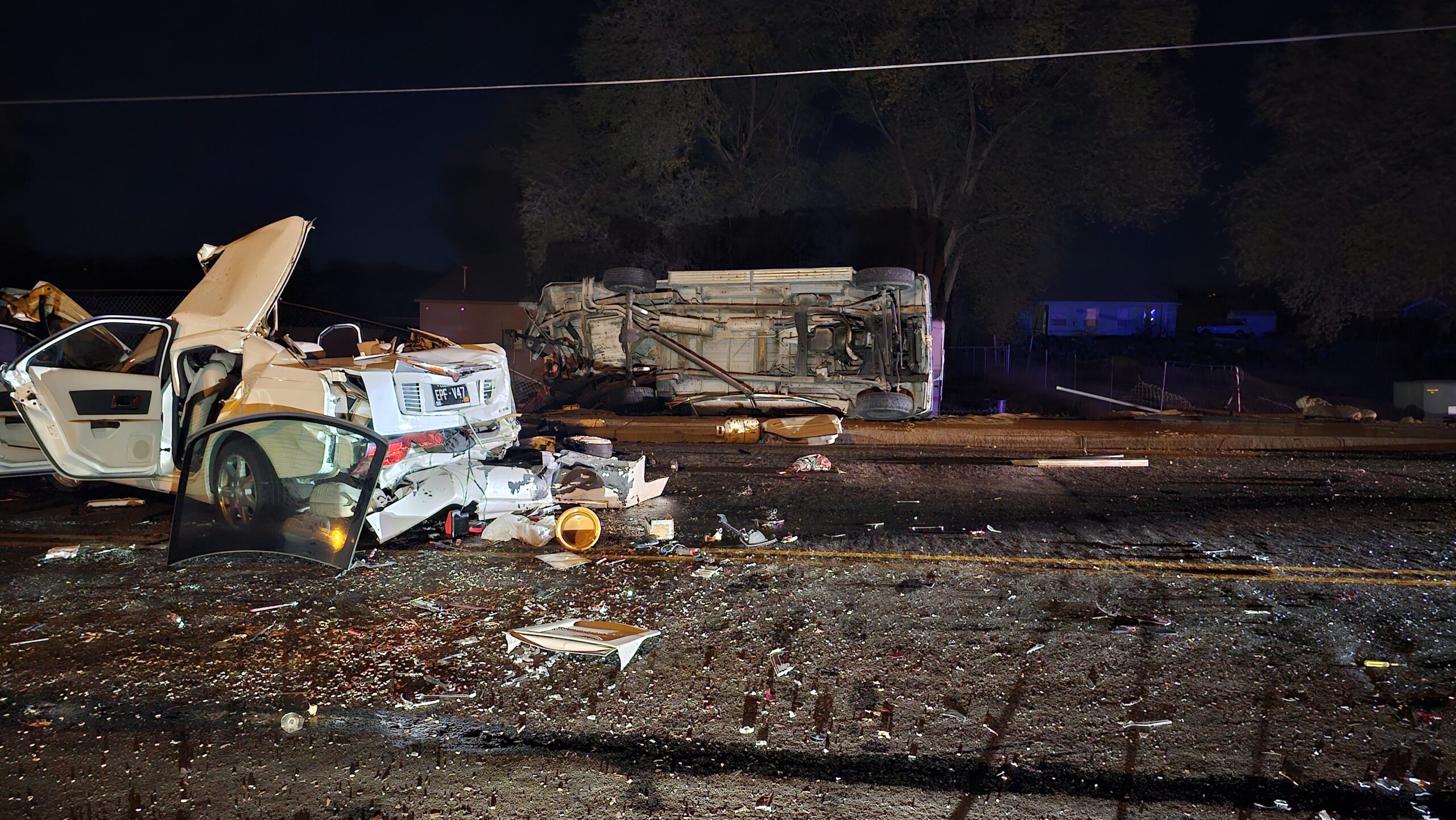 Two males occupying the white Cadillac were transported to the hospital with serious injuries. Driver of the navigator was treated for minor injury. DUI is suspected. D 1/2 Road was closed at Pera St and 33 Road for over 6 hours till just after midnight.