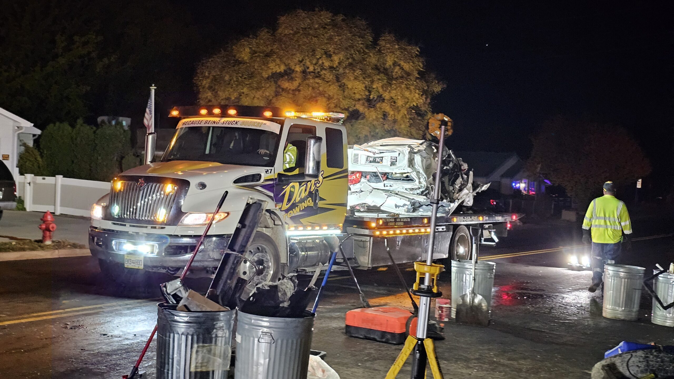 Update: A small dog traveling in the Cadillac was transported to animal ER with what appeared to be only minor injury.