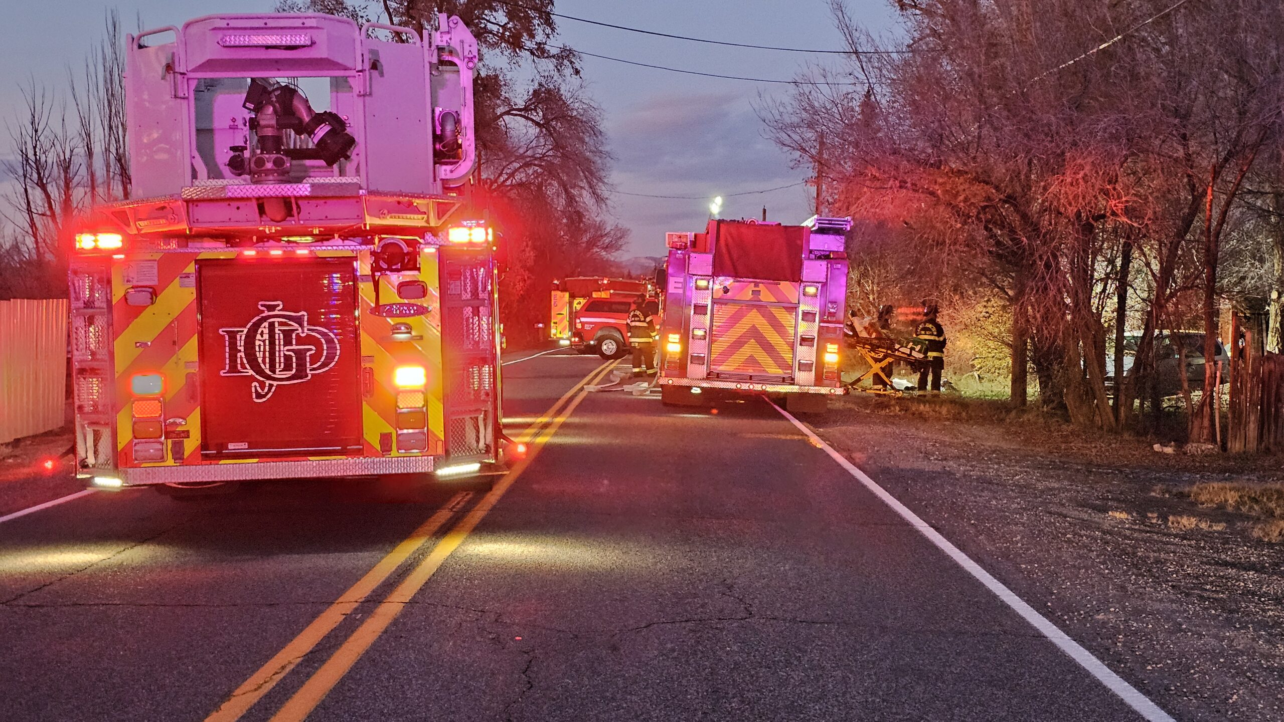 Fire crews and EMS were dispatched to a reported residential structure fire in the area of 24 Rd. Multiple fire units, ambulance crews and Mesa County Sheriff deputies responded after callers reported flames and smoke visible at a one-story, apparently abandoned house with boarded windows. Responders reported active flames coming from the east side of the home.