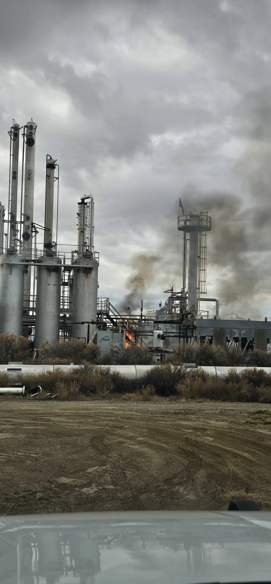 A structure fire was reported at an industrial fuel complex at 1629 21 Road where Lower Valley Fire responded. Radio traffic indicates a hot oil pump caught fire behind the control room on the west side of the property, with active flames close to equipment and multiple thousand-gallon oil tanks. Everyone on site was reported evacuated.